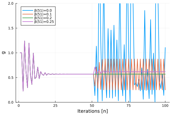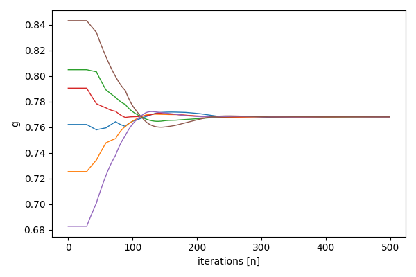 In the plot above, different stakeholders, shown with different colors, behave the same until an external input brings them out of order. Or like this: